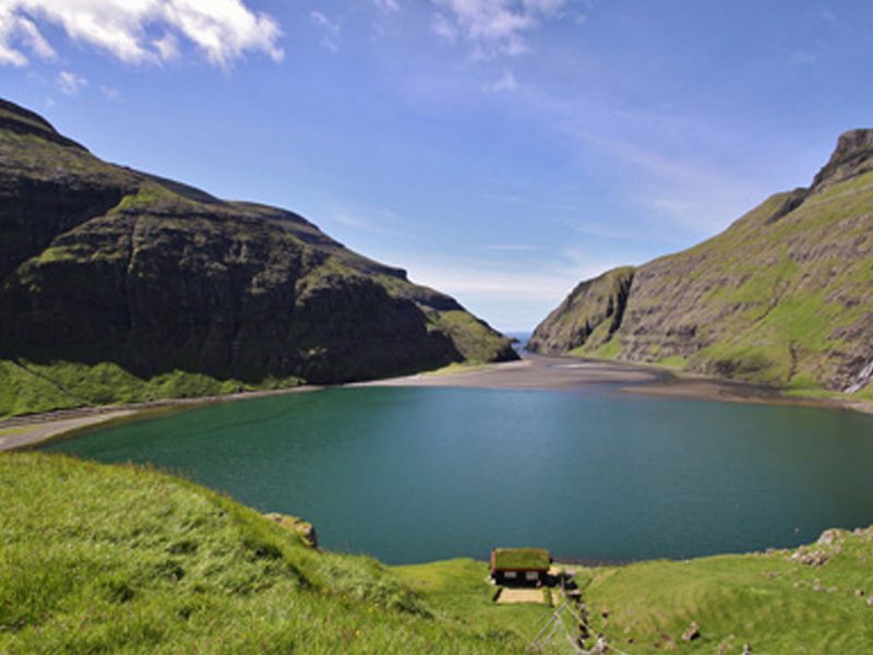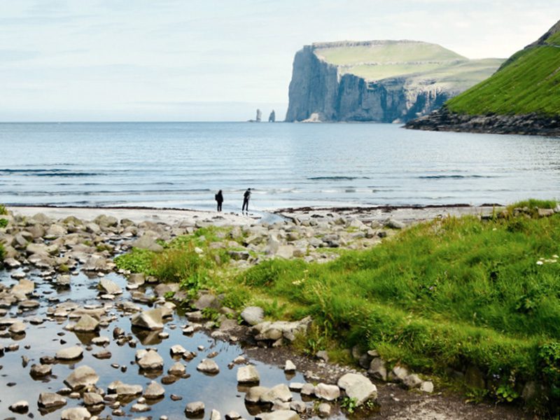We drive via the mountain road “Oyggjarvegur“, then along the coast line, passing the old former whaling station, to one of the oldest settlements in Faroe Islands, with a fantastic view to the stacks “Risin og Kellingin“.